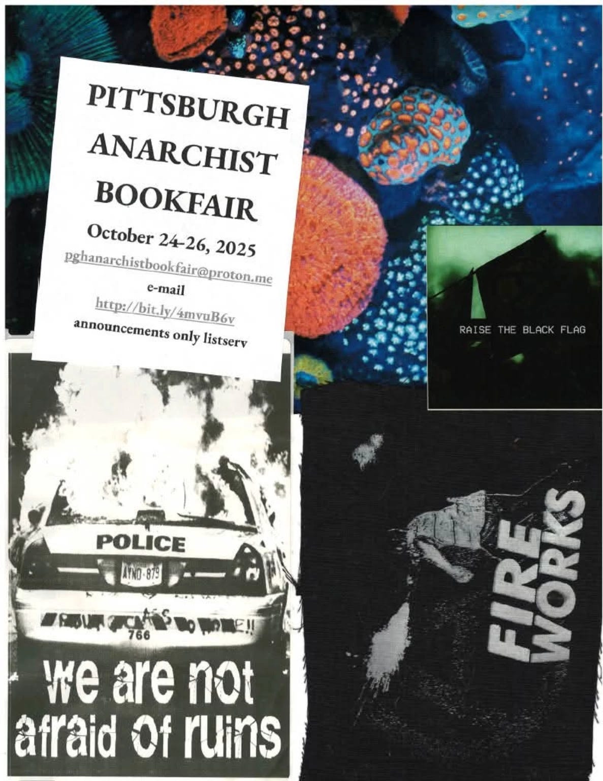 The Pittsburgh Anarchist Bookfair returns for a weekend of radical literature, workshops, and organizing. From October 24–26, 2025, meet publishers, collectives, and activists engaging in anti-authoritarian thought and struggle.